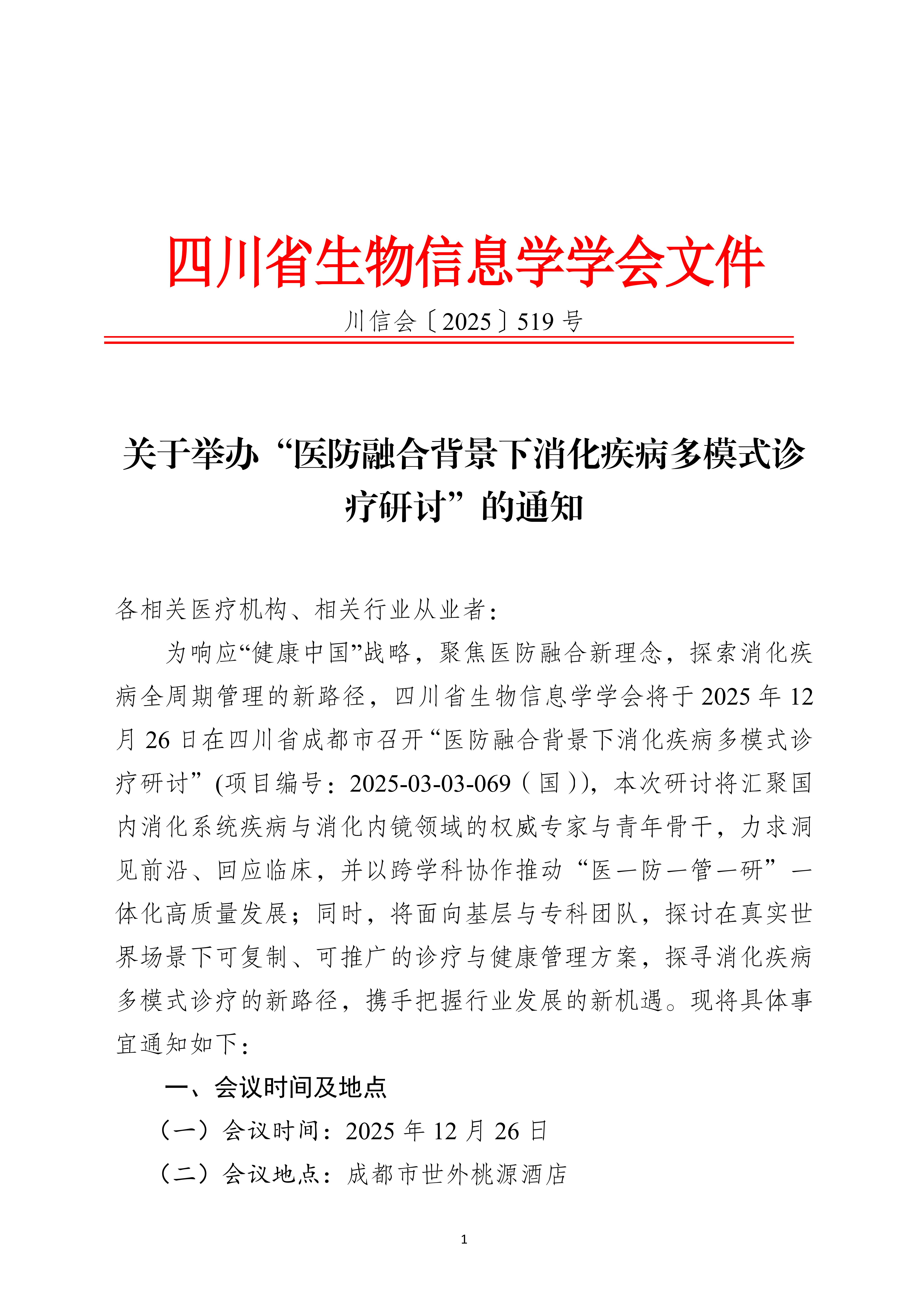 【会议通知】关于举办“医防融合背景下消化疾病多模式诊疗研讨”的通知