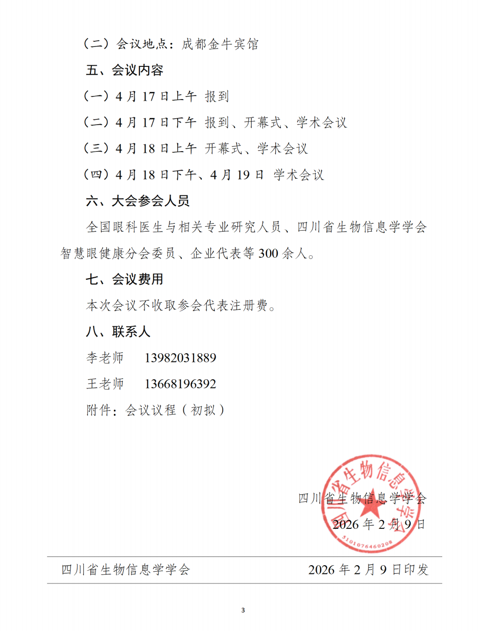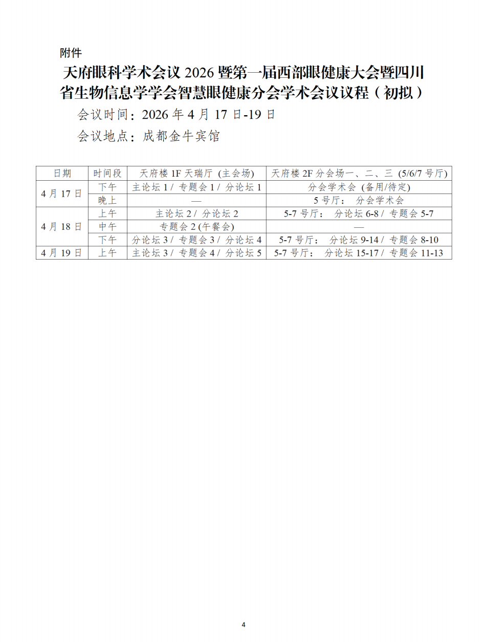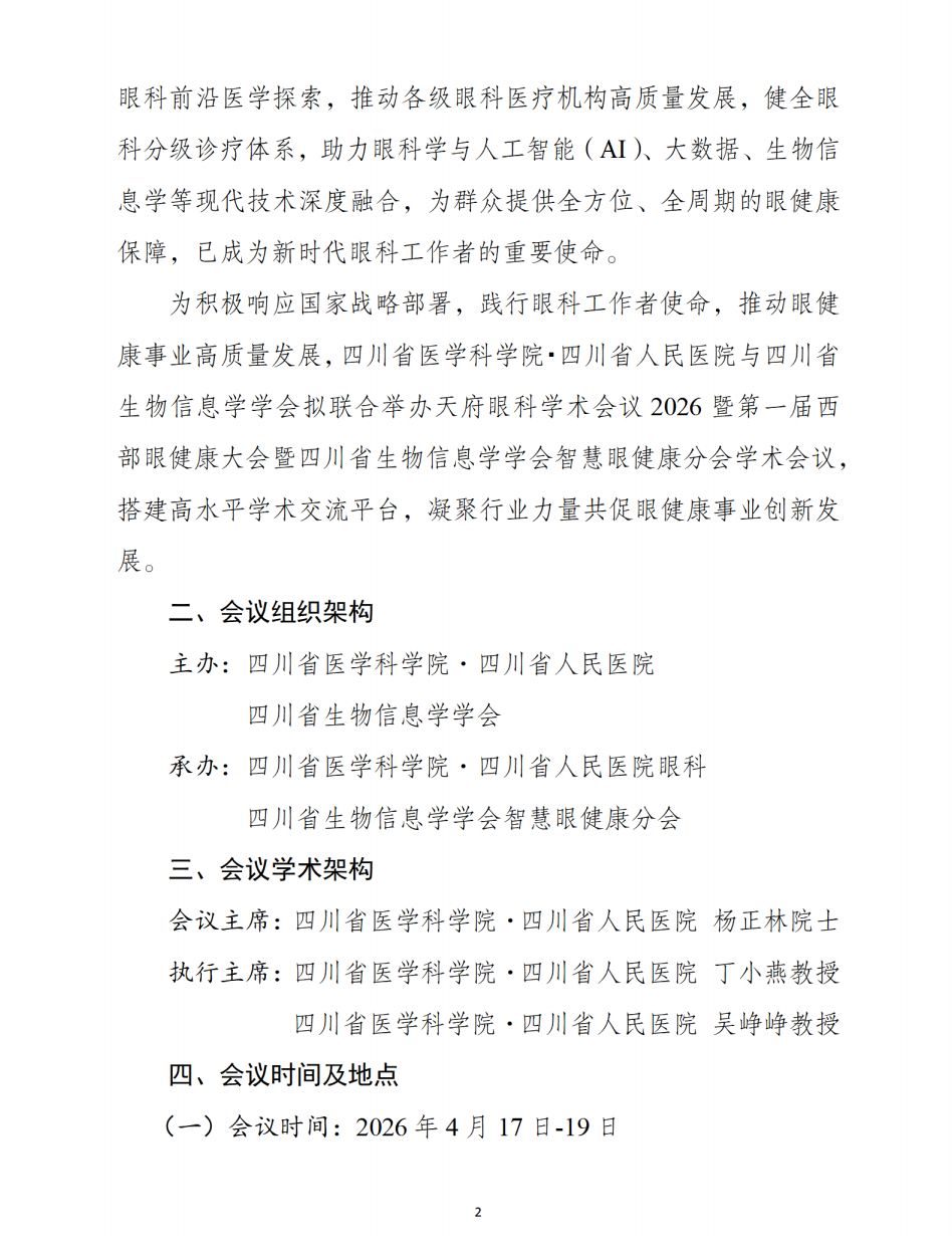【会议通知】关于举办天府眼科学术会议2026暨第一届西部眼健康大会暨四川省生物信息学学会智慧眼健康分会学术会议的通知(第一轮)
