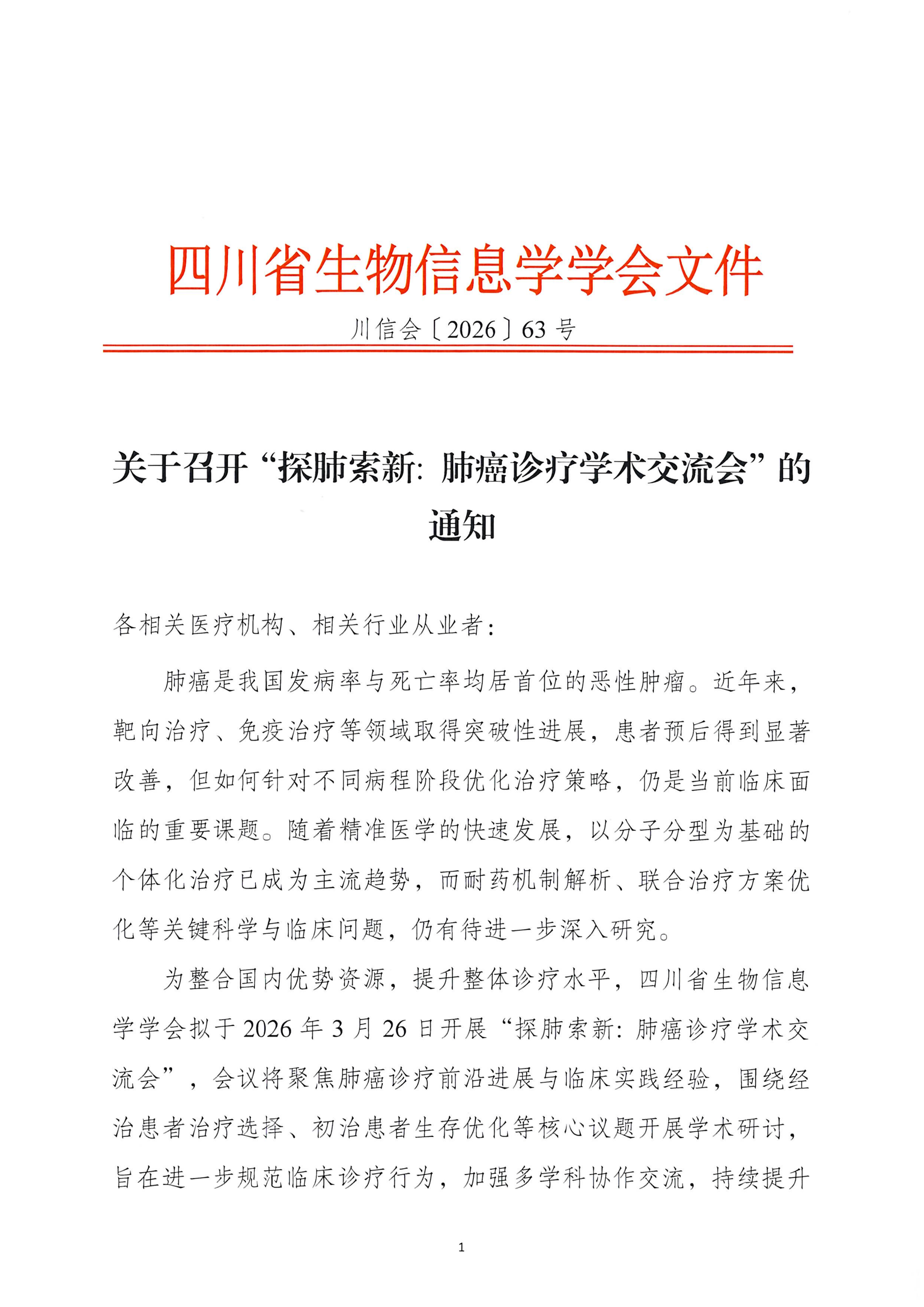 【会议通知】关于召开“探肺索新: 肺癌诊疗学术交流会”的通知