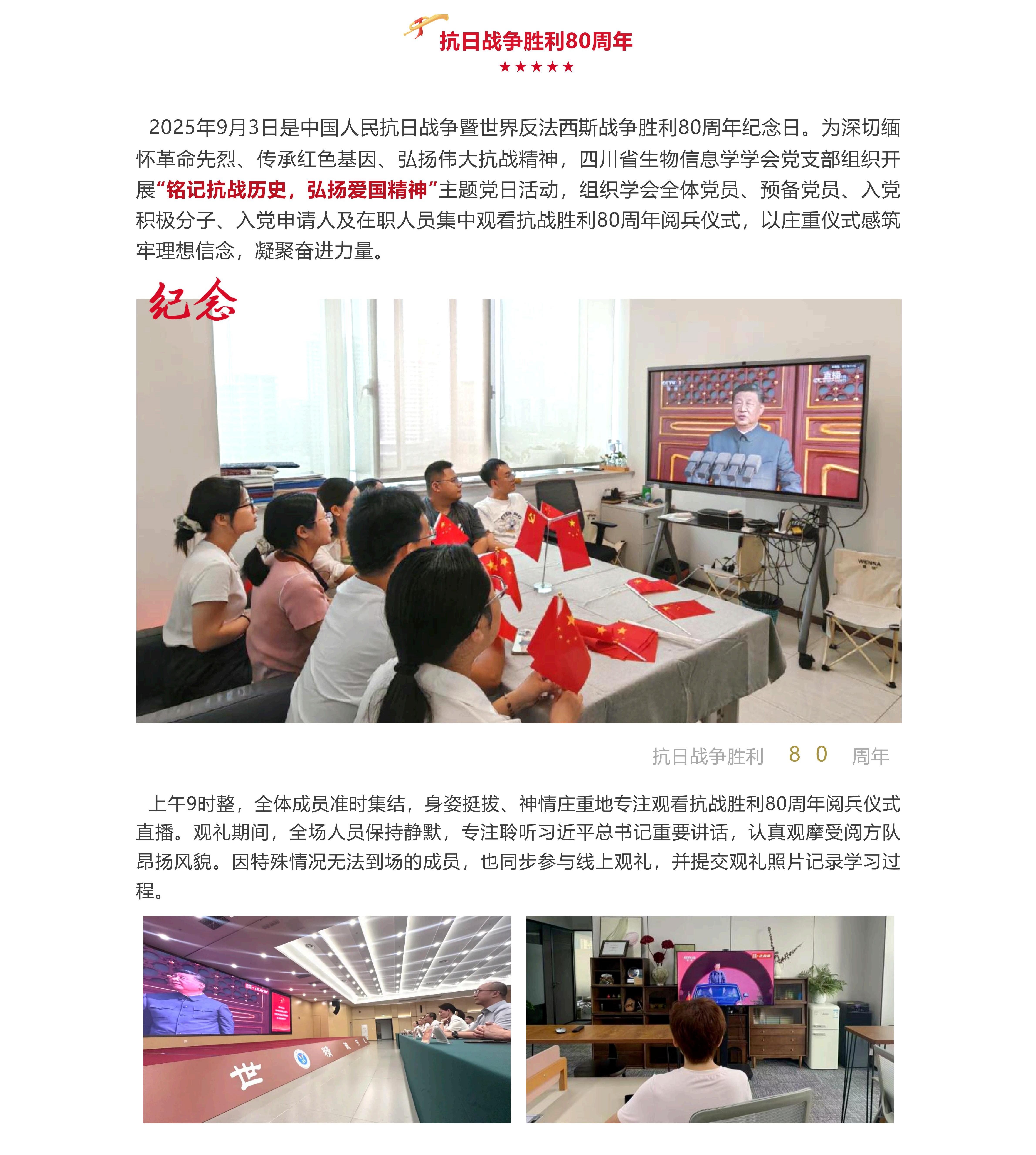 【党建活动】四川省生物信息学学会党支部开展“铭记抗战历史 弘扬爱国精神”主题党日活动