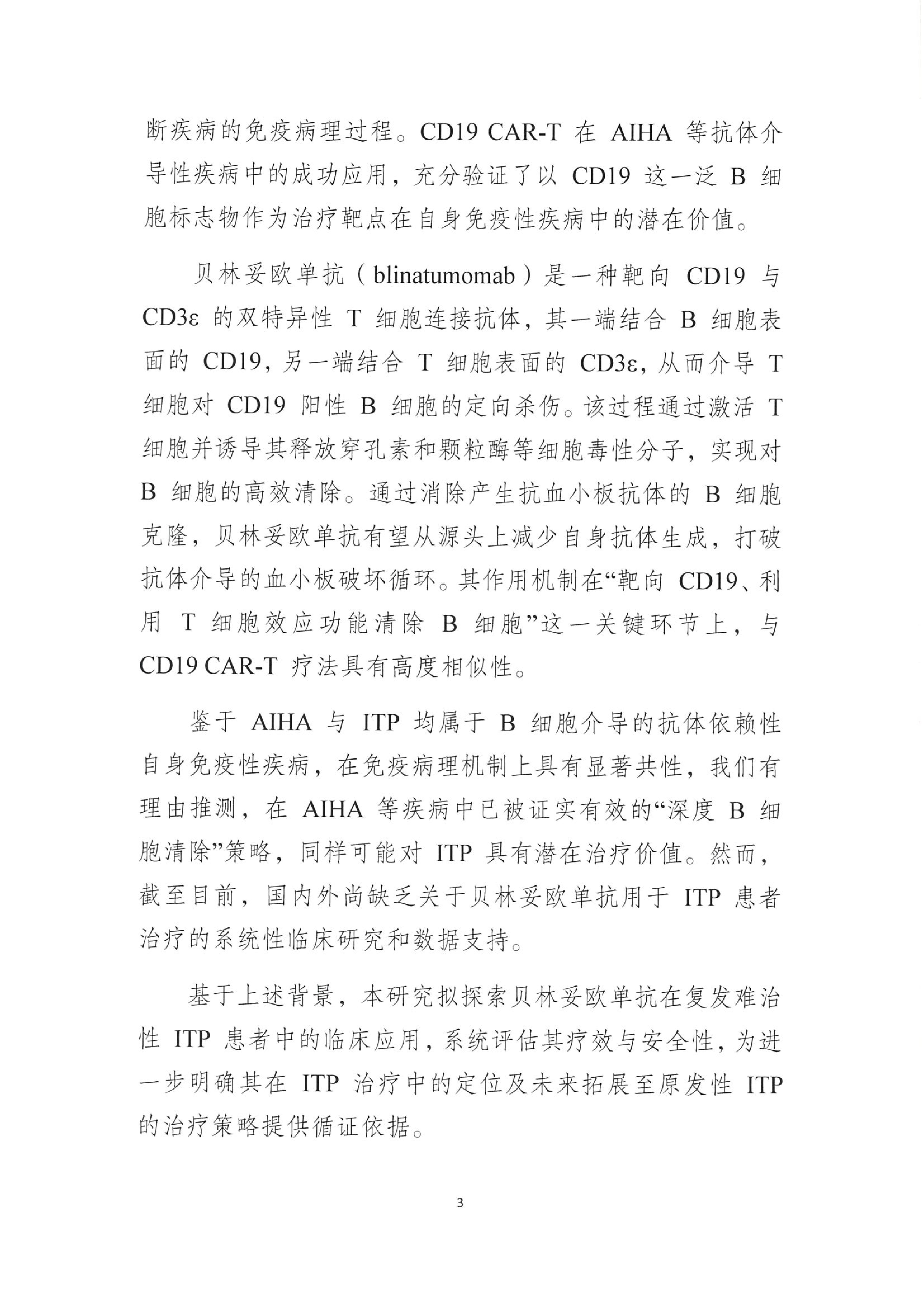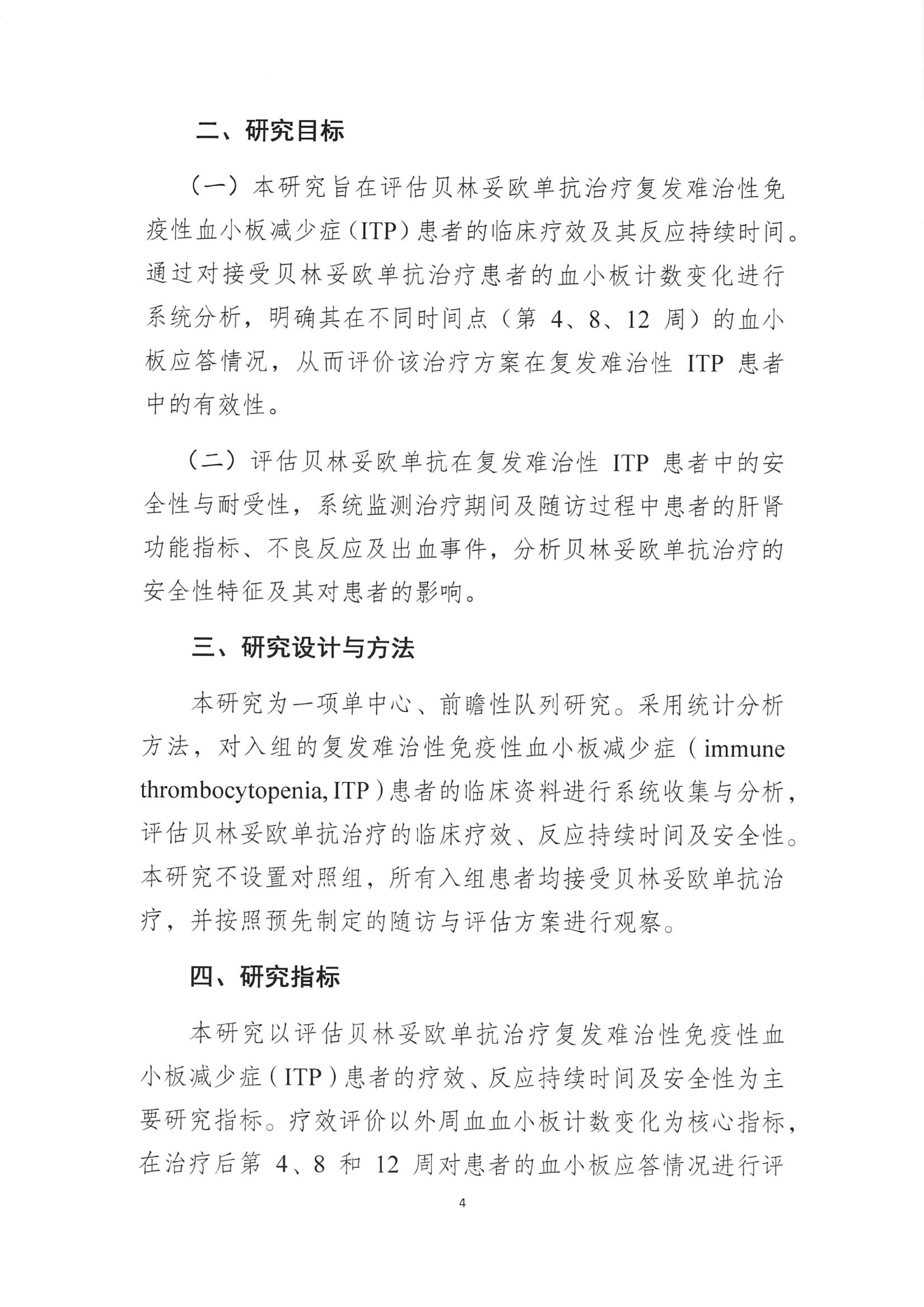 【申请通知】关于申报“贝林妥欧单抗治疗复发难治免疫性小板减少症患者临床研究” 课题研究项目的通知