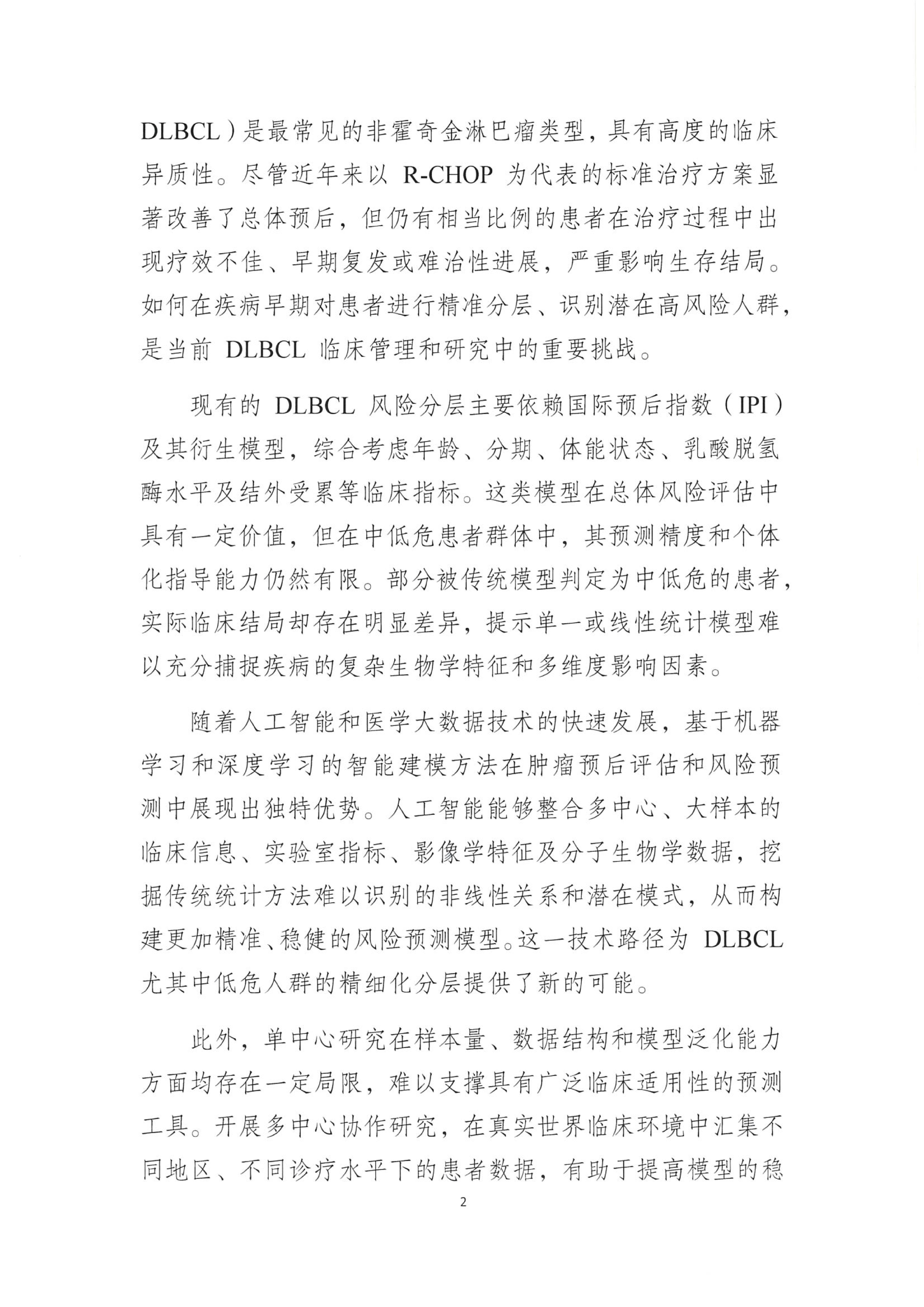 【申请通知】关于申报“人工智能辅助的中低危弥漫大B细胞淋巴瘤危险模型建立的多中心协作研究” 课题研究项目的通知