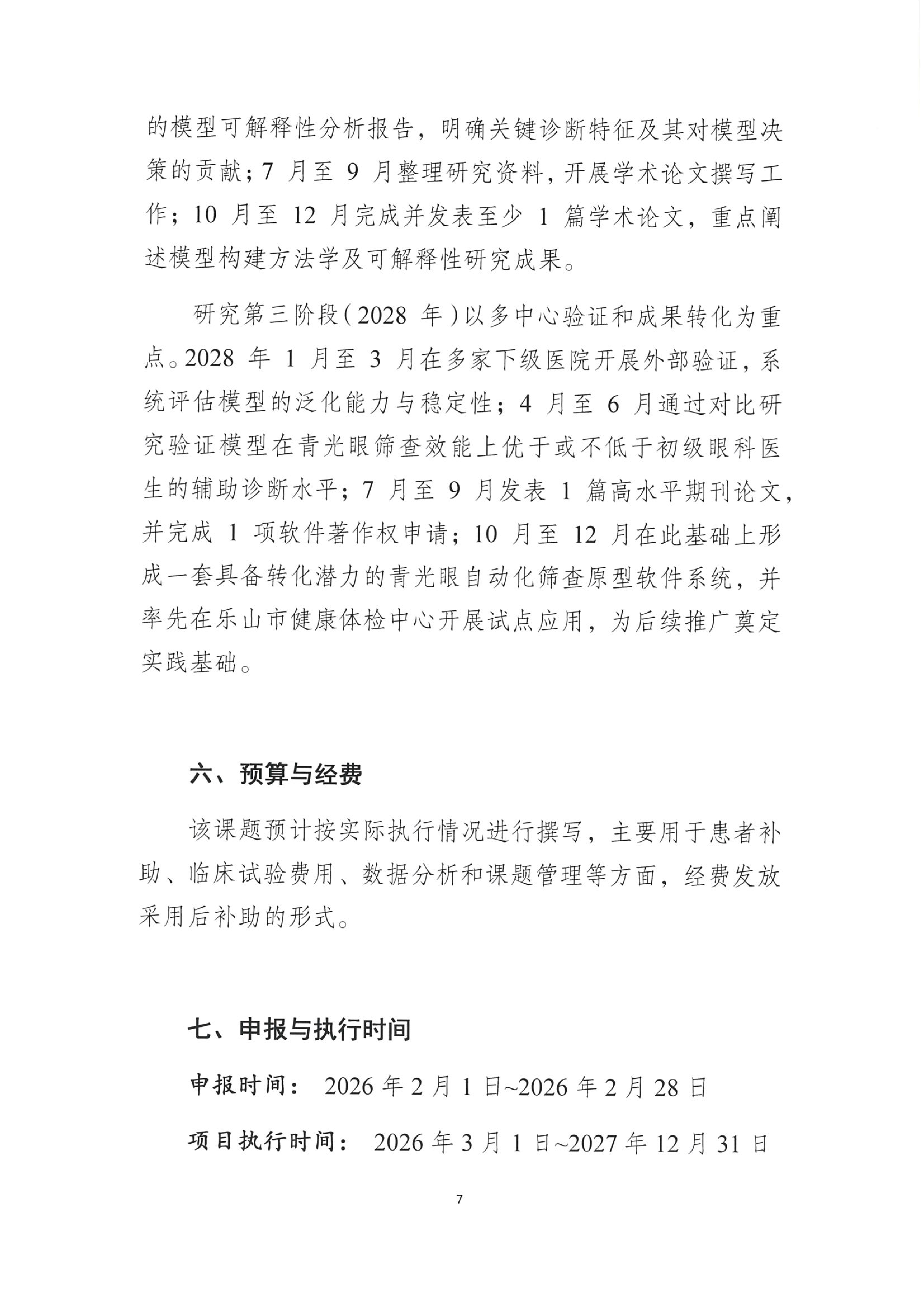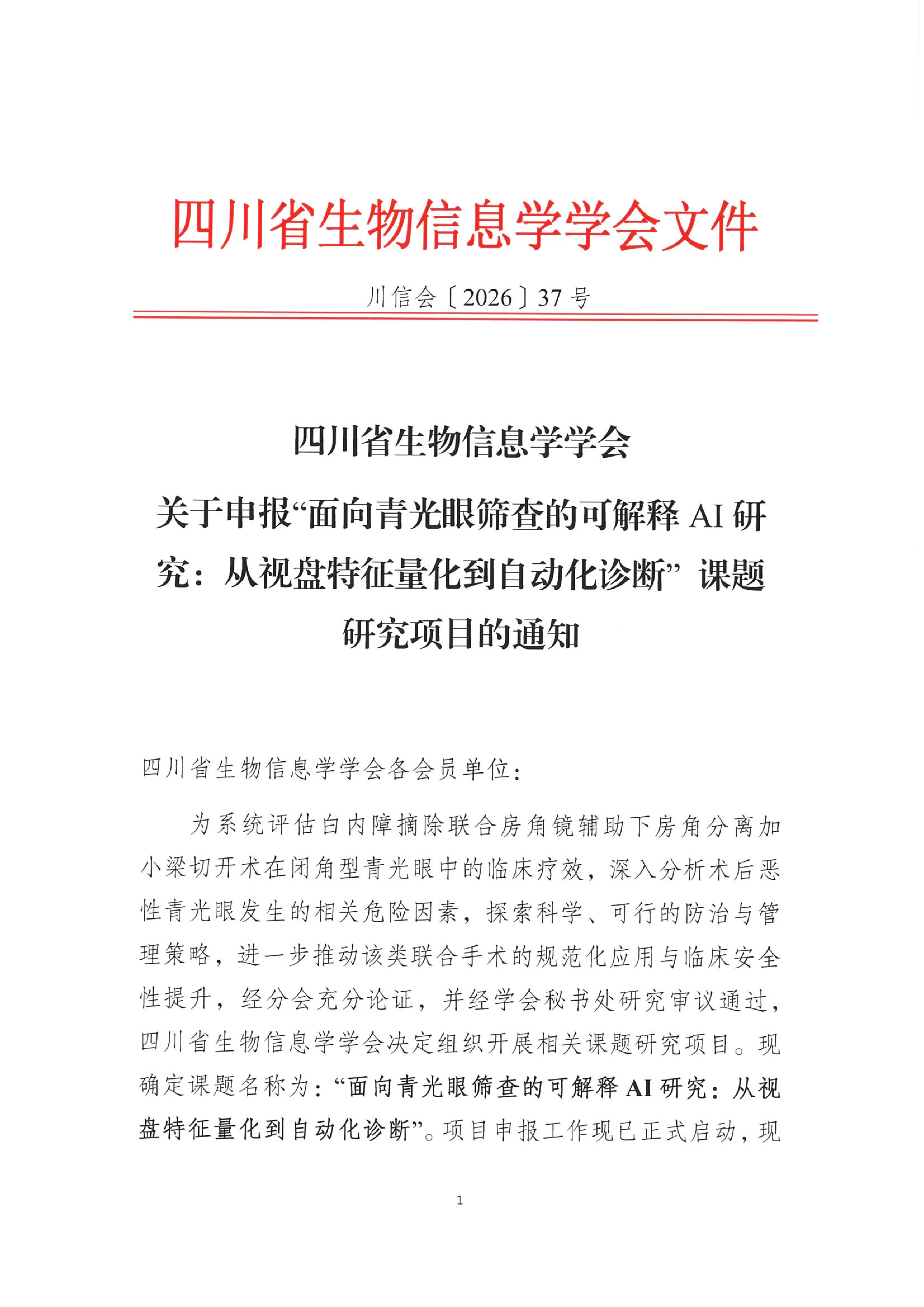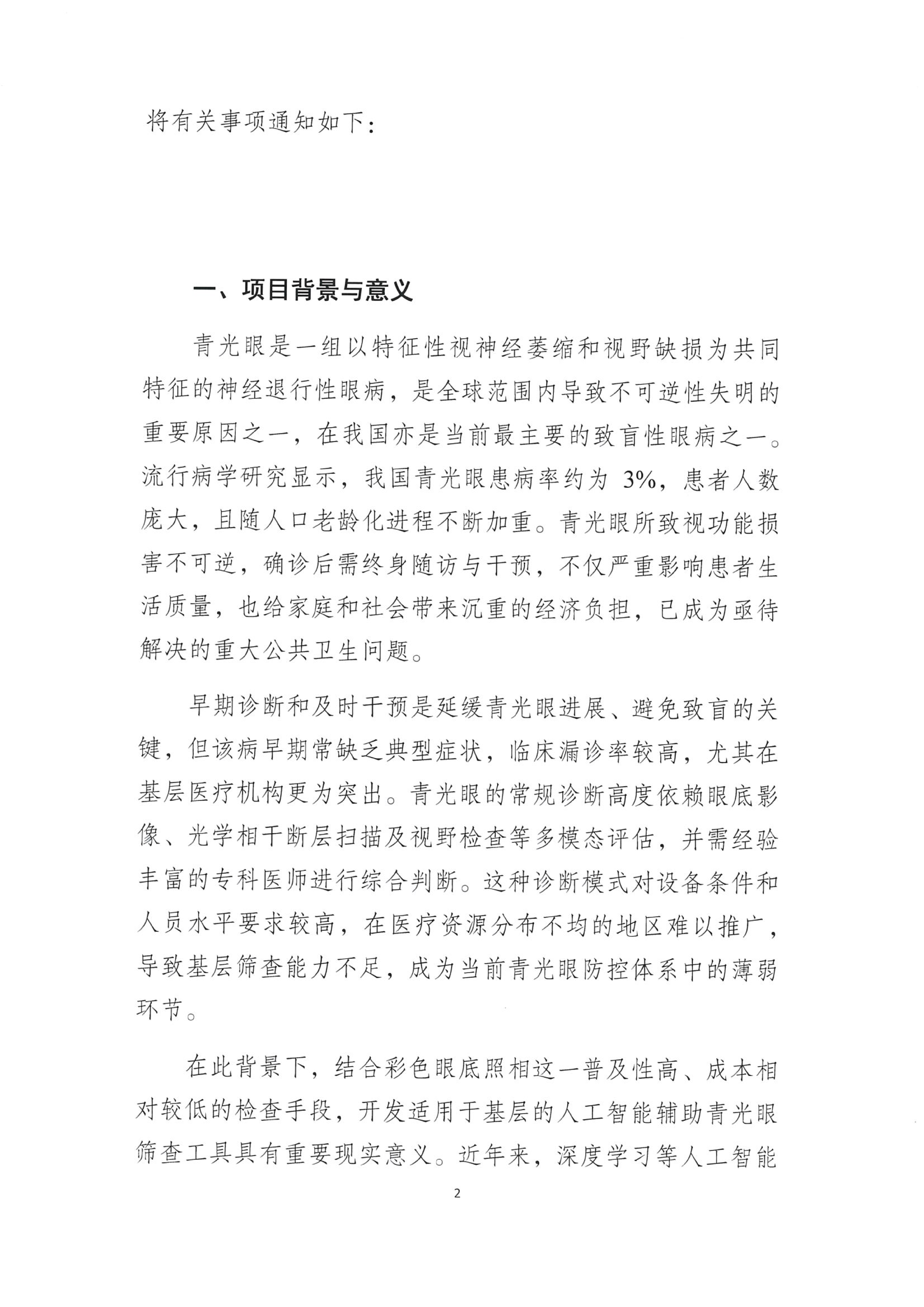【申请通知】关于申报“面向青光眼筛查的可解释AI研究:从视盘特征量化到自动化诊断” 课题研究项目的通知