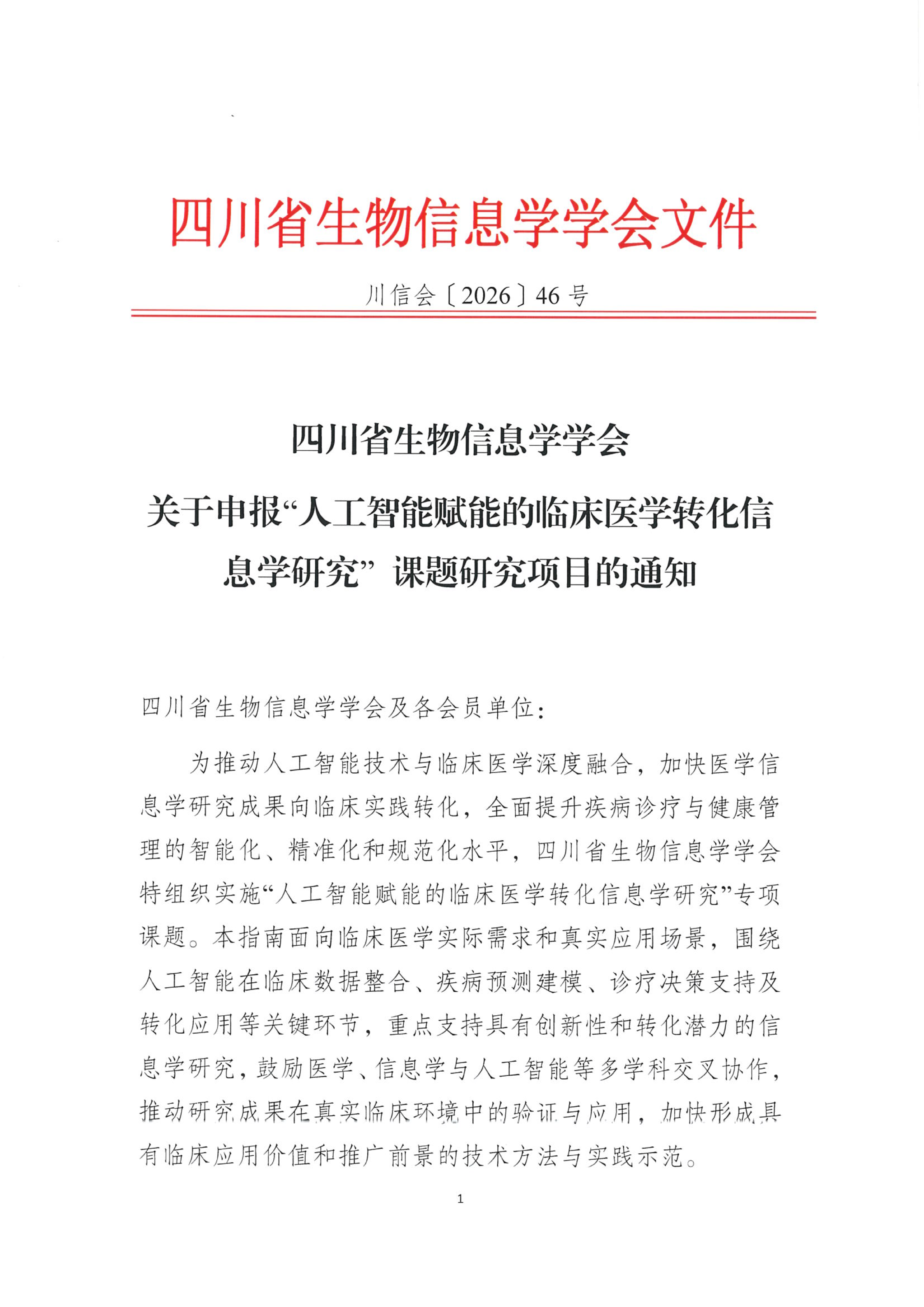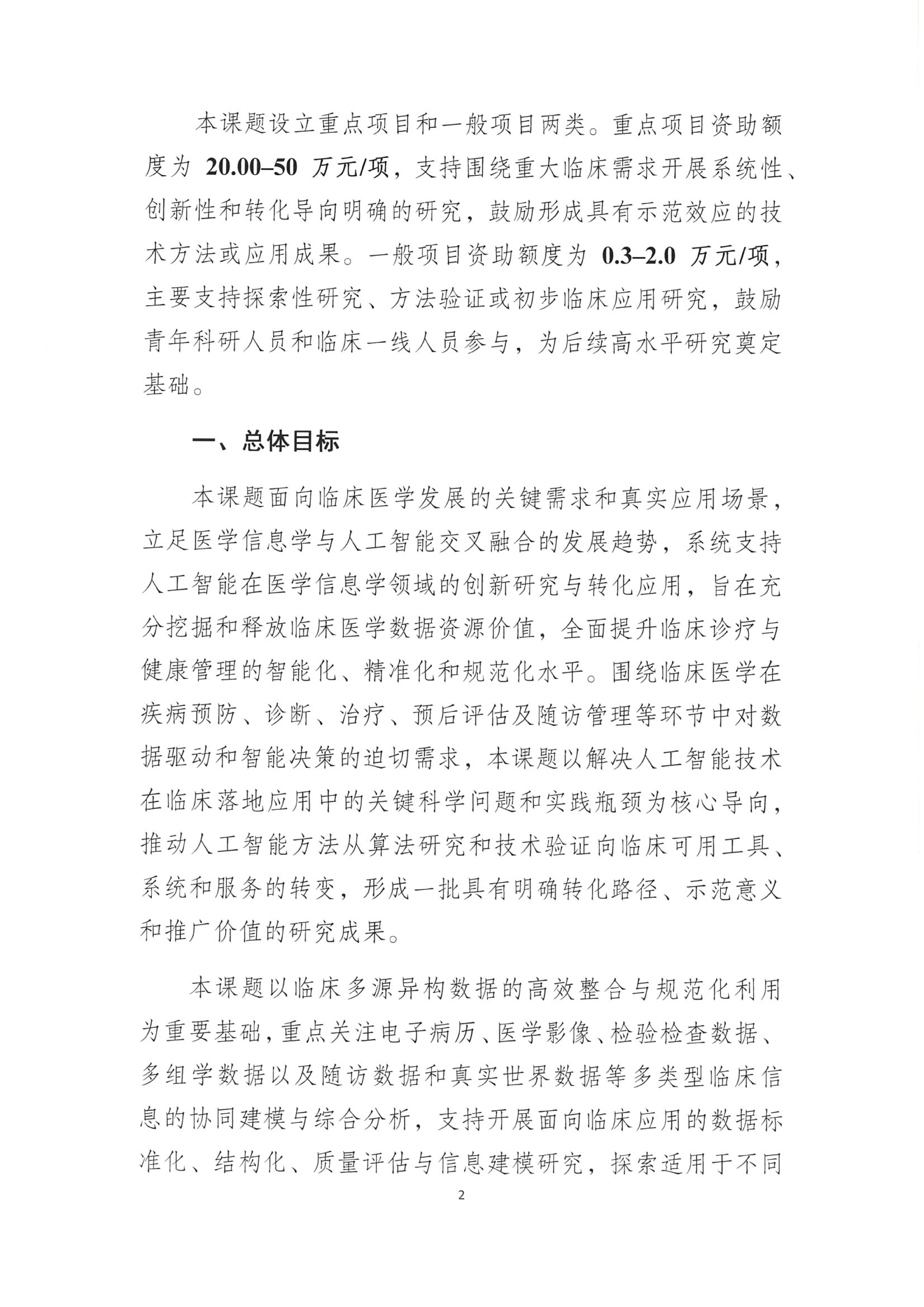【申请通知】关于申报“人工智能赋能的临床医学转化信息学研究” 课题研究项目的通知